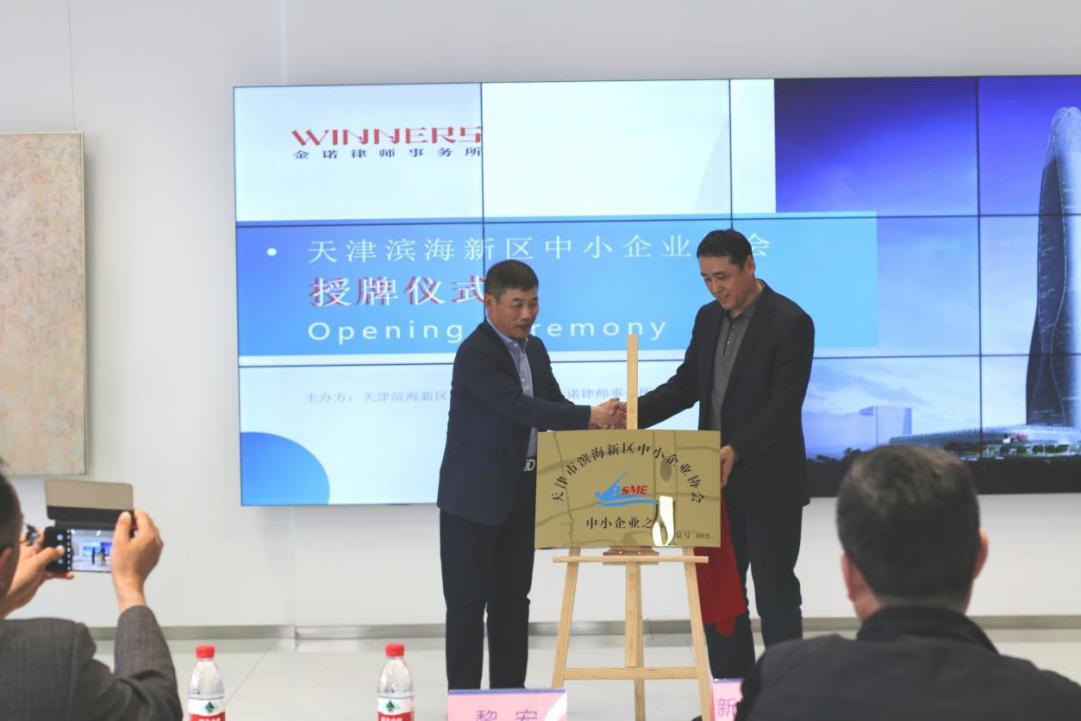 会议开始前,天津滨海新区中小企业协会向理事单位-天津金诺律师事务所进行了授牌仪式,授予金诺律师事务所为协会“中小企业之家”,由协会轮值会长黎宏与金诺律师事务所杨斌书记共同揭牌,扬斌书记表示:这块牌子是对金诺工作的认可,是压力更是做好工作的动力,金诺律师事务所将认真踏实地服务社会大众,普及法律知识,帮助客户更好的运用法律维护自身合法权益。